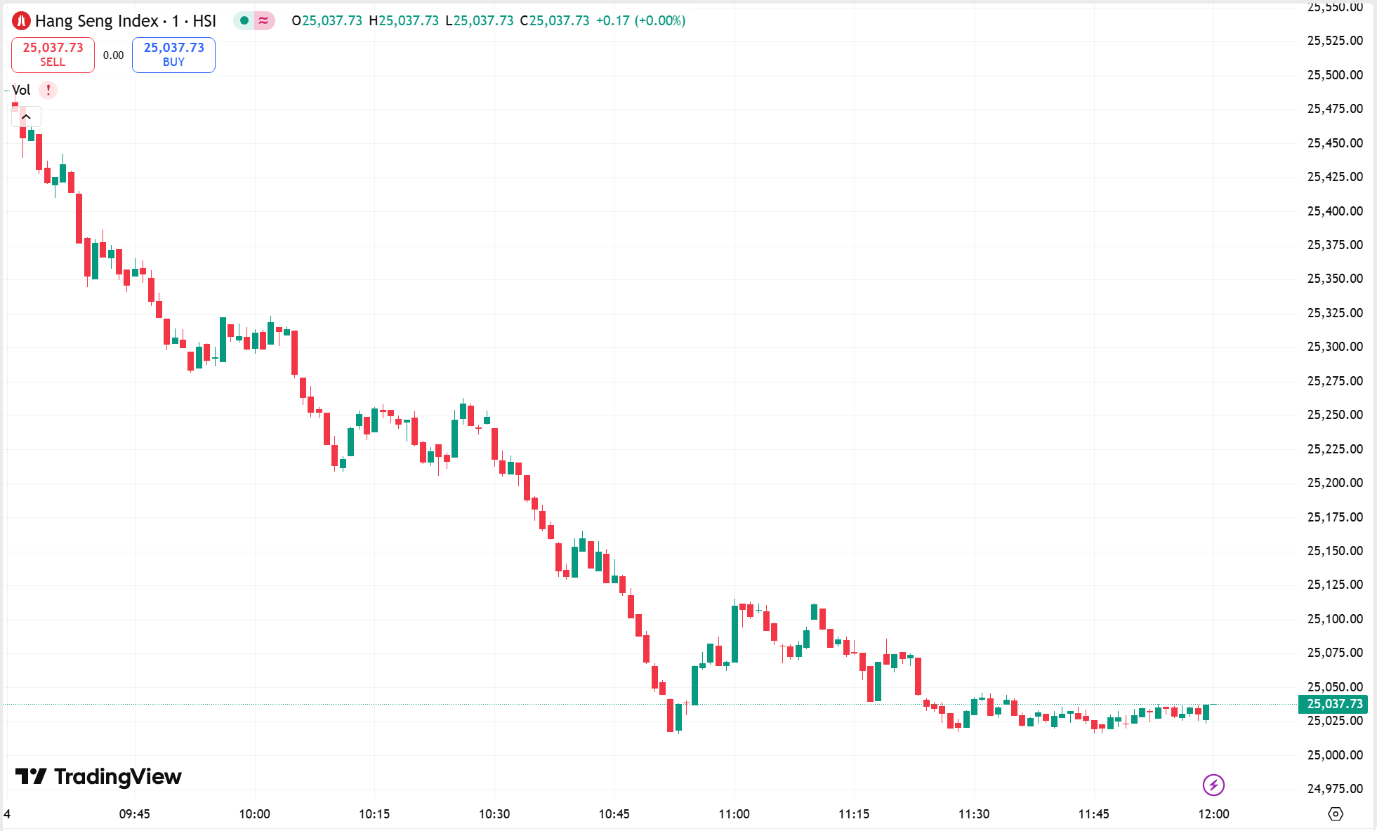 • 恒生指数跌 1.21%,收报 25,037.73 点