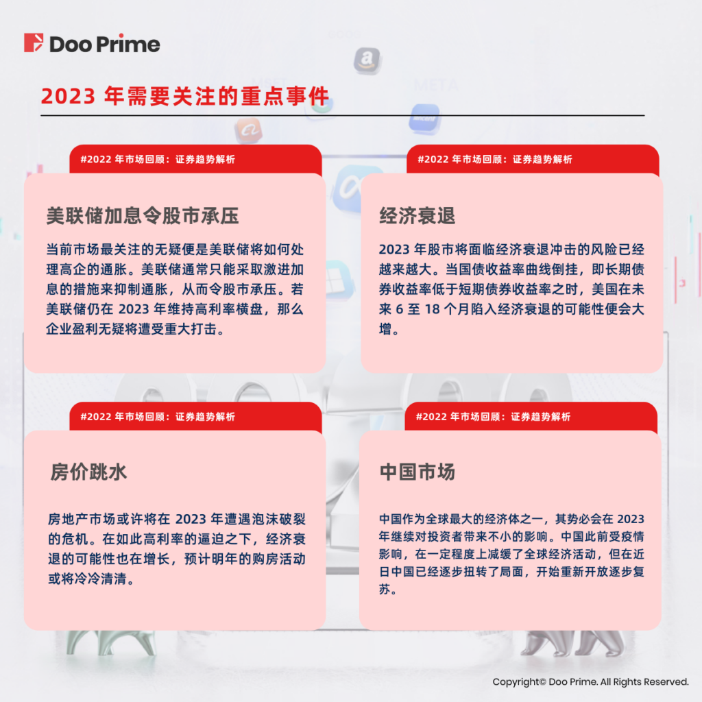 本信息仅供一般参考,仅供大众参考,不应被视为买卖任何金融工具的任何投资建议、推荐、要约或邀请。本文中显示的信息是在未参考或考虑任何特定接收者的投资目标或财务状况的情况下准备的。凡提及金融工具、指数或一揽子投资产品的过去表现,均不应视为其未来业绩的可靠指标。Doo Prime 与其控股公司、附属公司、子公司、关联公司、合作伙伴及其各自的员工、对所显示的信息不做任何陈述和保证,对于由于所提供信息的任何不正确和不完整、对于因任何与个人或客户投资相关的任何直接或间接交易或投资风险、损益,所导致的任何直接、间接、特殊或后果性的损失或损害,不承担任何责任。
