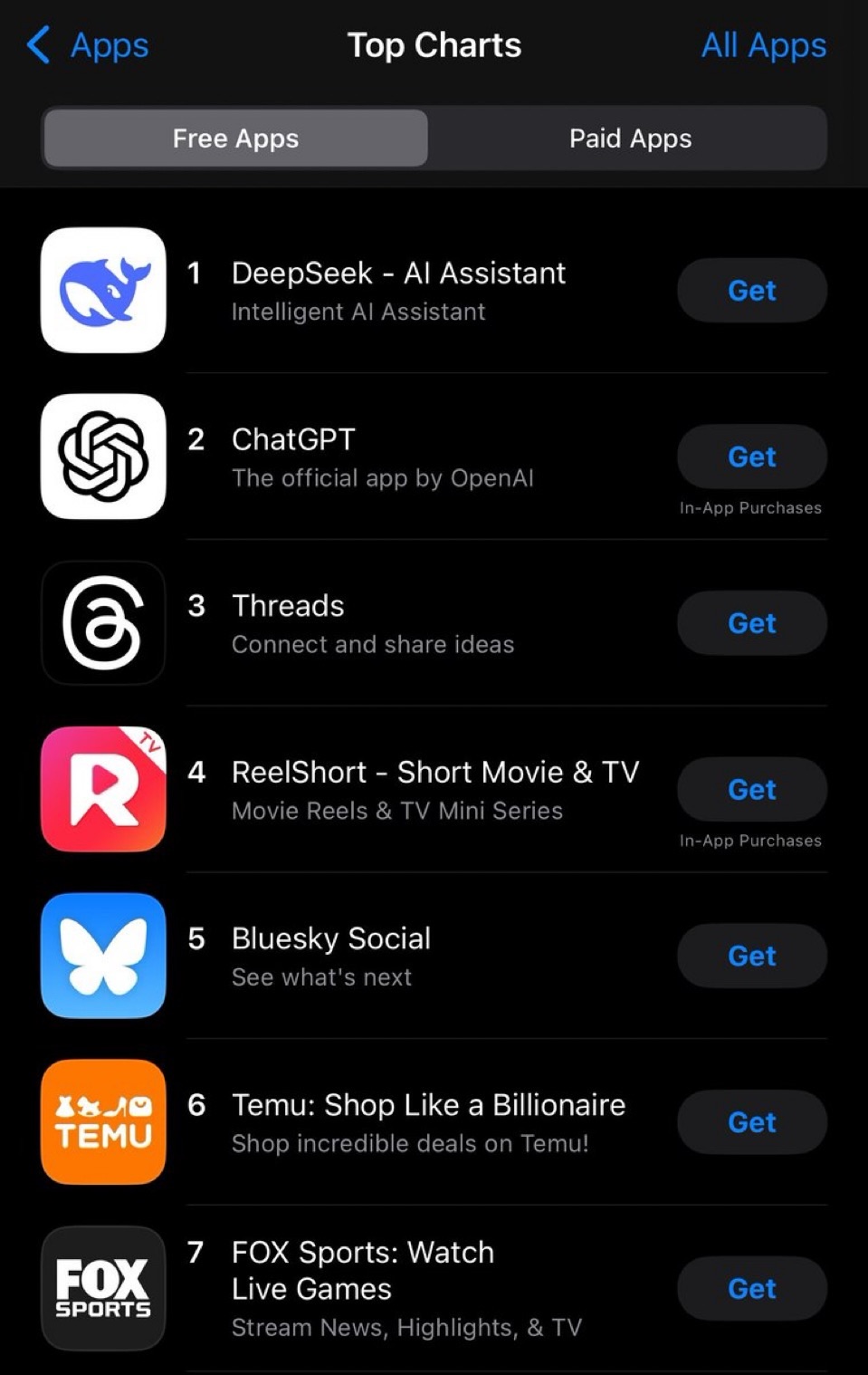 1 月 27 日,Deepseek 登顶苹果中国地区和美国地区应用商店免费 APP 下载排行榜,在美区下载榜上超越了 ChatGPT。DeepSeek 本次霸榜美国乃至全球社交媒体热搜,起因在于 1 月 20 日其正式发布推理大模型 DeepSeek-R1,其在数学、编程和推理等关键领域的表现,能与 OpenAI 推出的号称“人类史上最强推理模型”的 o1 抗衡,但其 API 调用成本却低了 90%-95%。