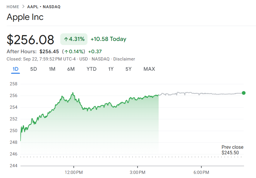 带动苹果股价急涨的主因是 iPhone 17 系列销售势头强劲。自 9 月 12 日开售以来,多个市场出现排队抢购与断货现象,显著提振投资人情绪。
