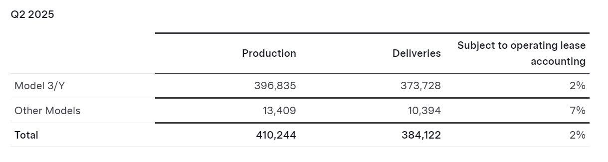 特斯拉第二季度全球交付量为 384,122 辆,虽略低于分析师预估均值的 389,407 辆,但显著高于此前市场传言的 35 至 36 万辆悲观预测,带动股价反弹近 5%。