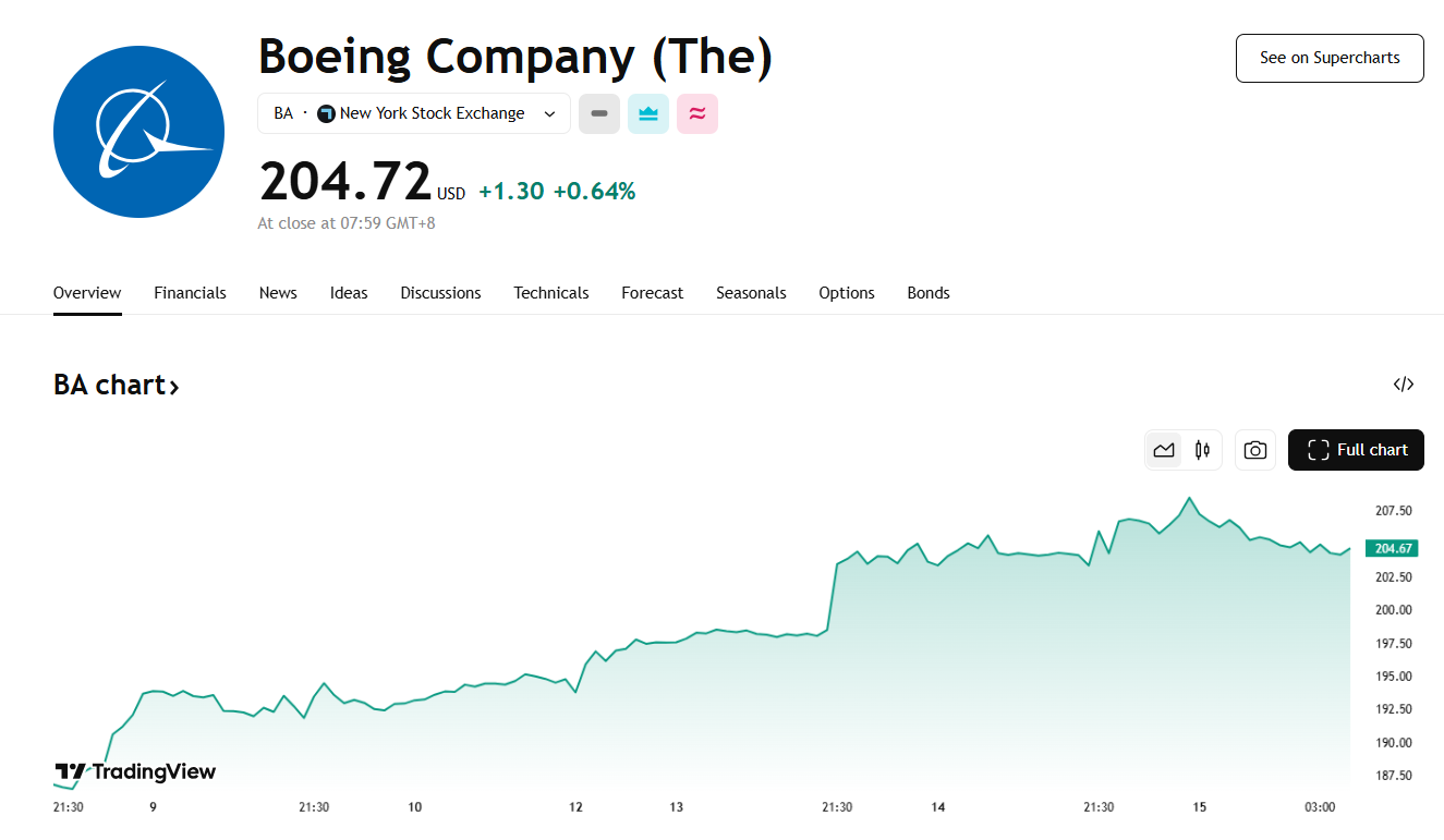 波音获卡塔尔巨额订单,股价涨超 3% 创 15 个月新高
