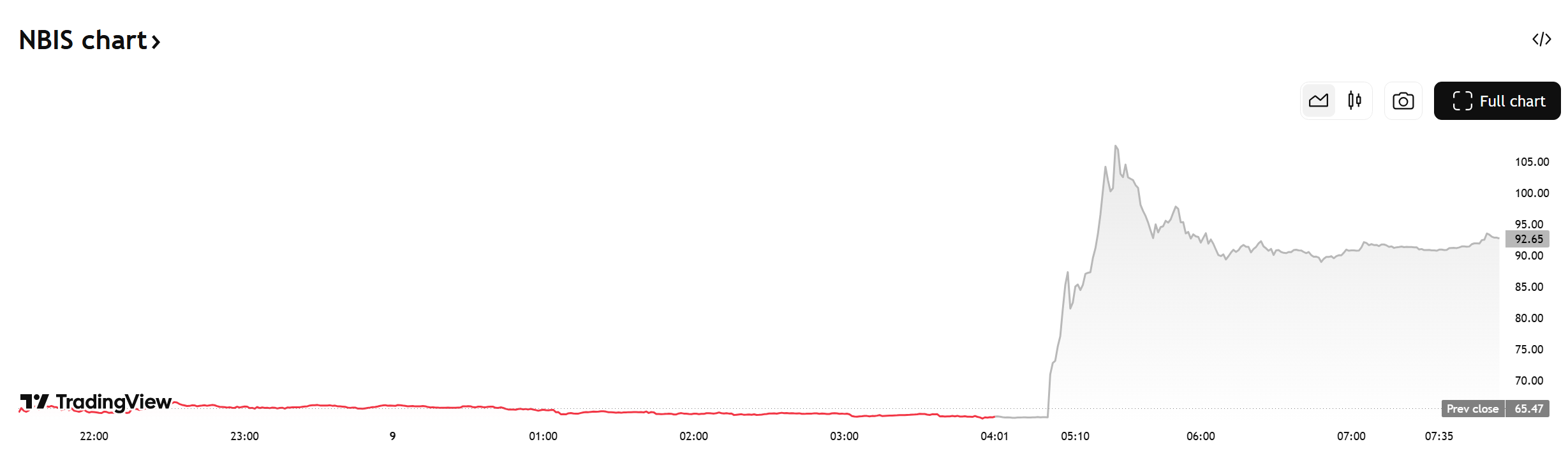 英伟达持仓股 Nebius 盘后一度飙升逾 60%,获微软 AI 大单加持