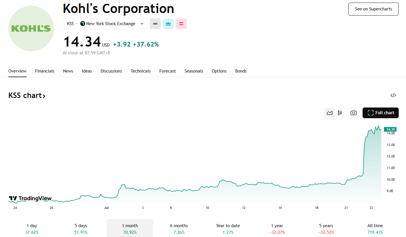 迷因股热潮蔓延,柯尔百货股价单日暴涨 37%