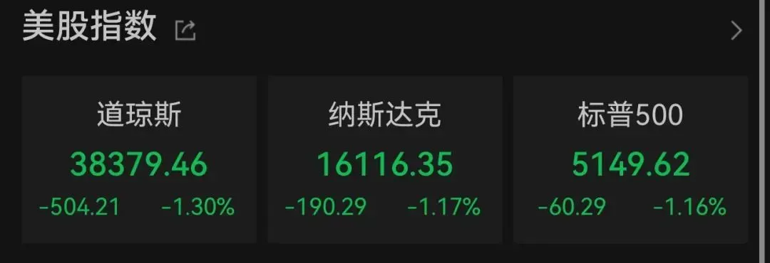 美国超预期的 CPI 数据直接引发全球市场巨震。欧洲市场集体跳水,随后又小幅上涨。美股三大期指直线跳水后,美股大幅低开。道指下跌 504.21 点,跌幅达 1.3%;纳指下跌 190.29 点,跌幅达 1.17%;标普 500 指数下跌 60.29 点,跌幅达 1.16%。