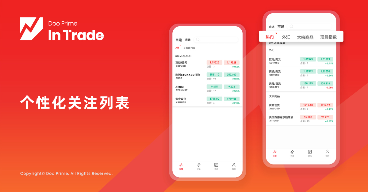 凭借强大的金融科技基础设施、密切的合作伙伴关系、资深的技术团队,Doo Prime 始终为投资者提供安全可靠的交易环境、具有竞争力的交易成本、极速的交易执行通道,在 MT4、MT5、TradingView、InTrade 等多个行业领先的交易终端上提供超过 1 万种交易产品,支持 10 种不同货币的存取款方式,7*24 小时的多语言客户服务。