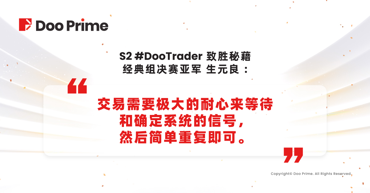 希望上届老选手的经验分享能为今年的参赛者带来启发,在本届比赛中取得好成绩。同时,也期待众多优秀的投资者,可以通过 #DooTrader 慈善杯全球交易大赛提供的平台,夯实自身实战经验,挖掘自身交易潜能,与更多业内高手互动学习,还能赢取丰厚奖金,获得荣誉奖励。