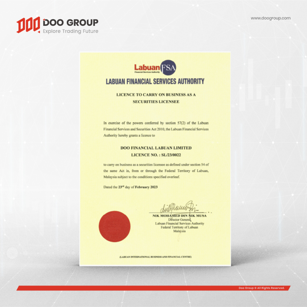 นับเป็นอีกหนึ่งก้าวแห่งความสำเร็จของบริษัท Doo Financial Labuan Limited ซึ่งเป็นบริษัทในเครือของ Doo Group ได้ใบอนุญาตหลักทรัพย์ (ใบอนุญาตเลขที่: SL/23/0022) และ Money Broking (ใบอนุญาตเลขที่: MB/23/0108) จาก Malaysia Labuan Financial Services Authority (MY Labuan FSA) โดย บริษัท Doo Financial Labuan Limited เป็นบริษัทหลักทรัพย์ที่ตั้งอยู่ในเกาะลาบวน ประเทศมาเลเซีย