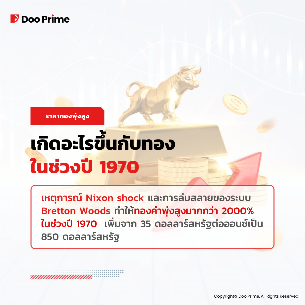เหตุการณ์เหล่านี้นำไปสู่ความต้องการทองคำที่เพิ่มขึ้นมหาศาลและทำให้ราคาพุ่งสูงขึ้นกว่า 2,000% ในปี 1970 โดยเพิ่มขึ้นจาก 35 ดอลลาร์ต่อออนซ์เป็น 850 ดอลลาร์สหรัฐฯ