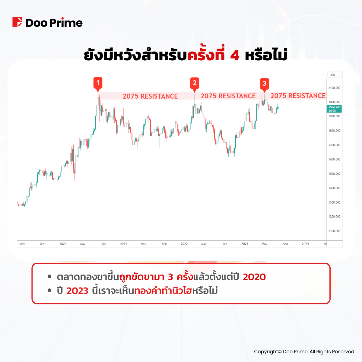 นักลงทุนควรติดตามโซนแนวต้านปี 2000-2075 สำหรับขาขึ้นที่อาจเกิดขึ้นในตลาดทองคำ อย่างไรก็ตาม หากต้องการทำสถิติสูงสุดใหม่ ตลาดทองคำอาจต้องการตัวกระตุ้นใหม่ อาจจะเป็นอะไรก็ได้จากความกลัวเงินเฟ้อที่กลับมาใหม่ รวมถึงเฟดหันมาใช้นโยบายการเงินและเริ่มลดอัตราดอกเบี้ย หรือการพัฒนาที่แข็งแกร่งของสกุลเงิน BRICS ที่มีทองคำหนุนหลัง