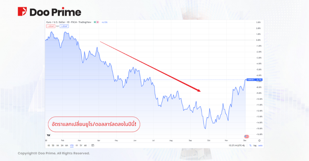 ในที่สุด ความเชื่อมั่นของเศรษฐกิจแถบยูโรโซนก็ค่อยๆ ลดน้อยลง ส่งผลให้อัตราแลกเปลี่ยนเงินยูโรตกต่ำลงไปด้วย