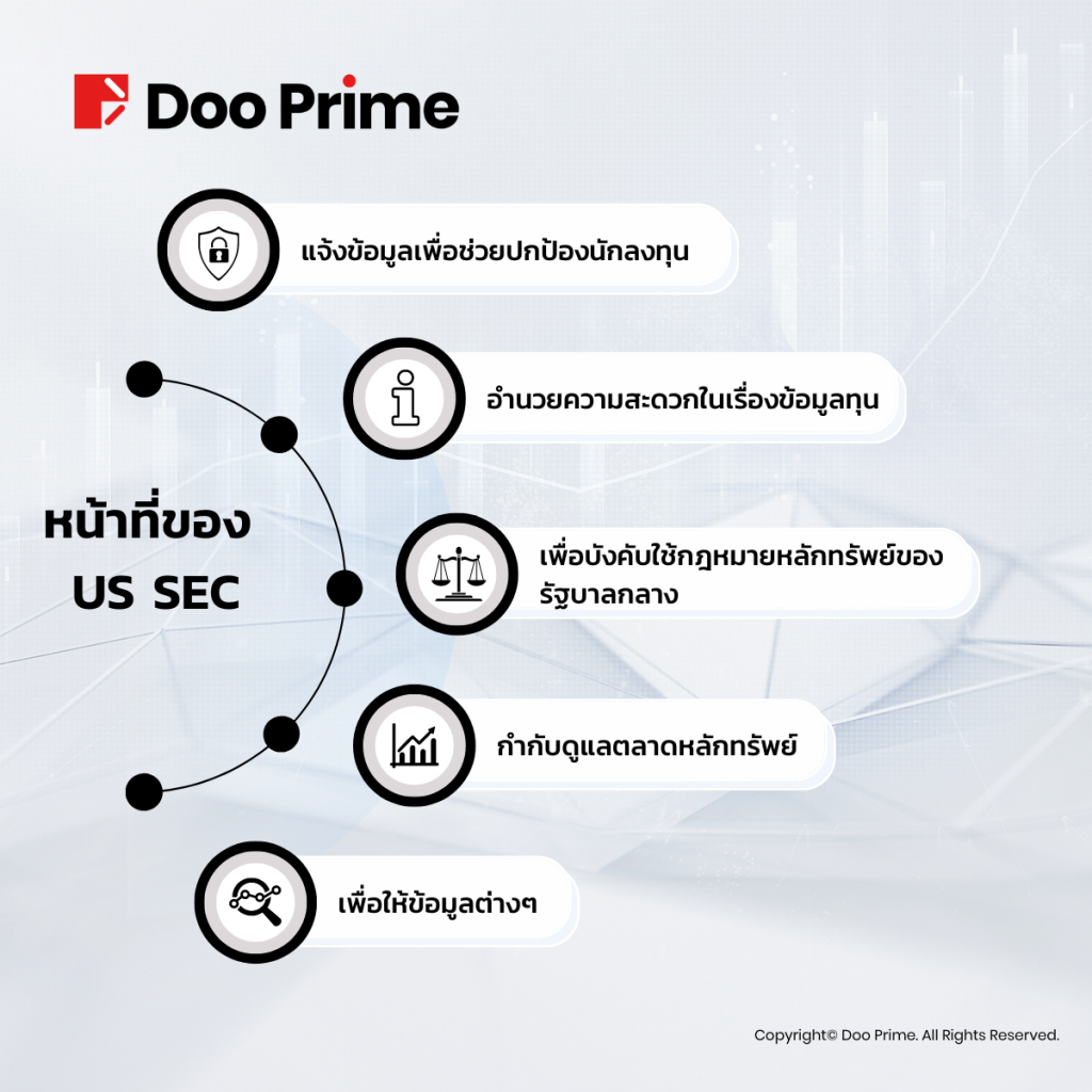 ด้วยประวัติของ US SEC ที่ยาวนานกว่า 80 ปี หน้าที่หลักของบริษัทคือการปกป้องนักลงทุน โดยการตรวจสอบความเป็นธรรม โปร่งใส และความมีประสิทธิภาพของตลาดการเงิน มุ่งมั่นที่จะสร้างผลลัพท์เชิงบวกต่อเศรษฐกิจและชีวิตของคนในสหรัฐฯ