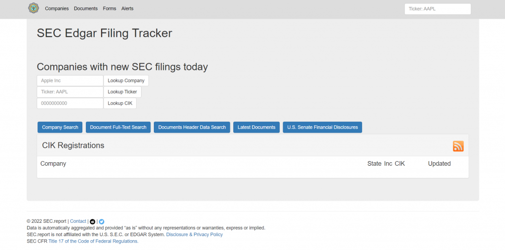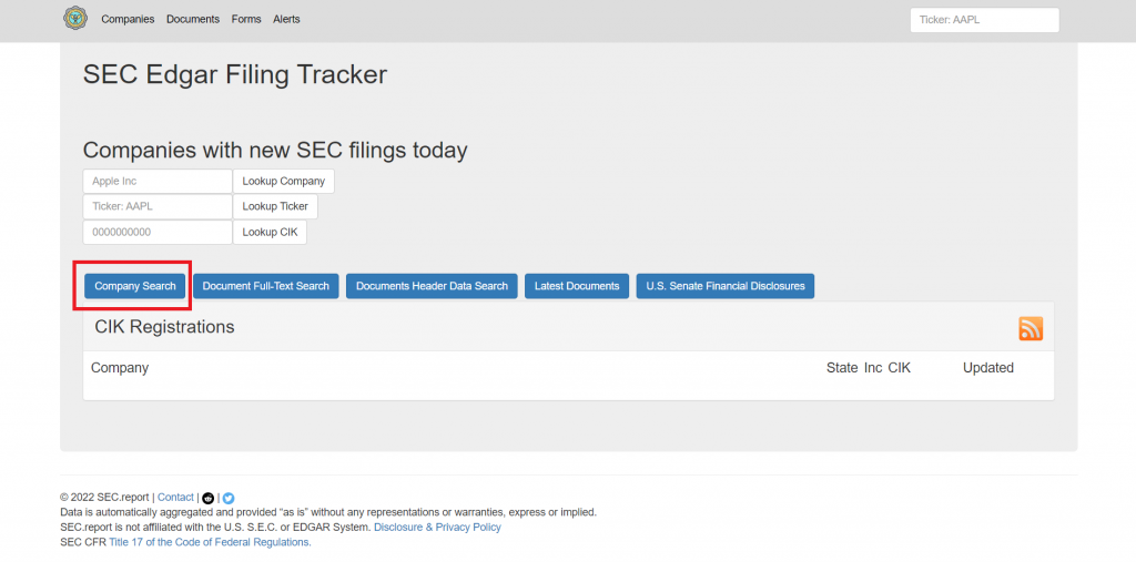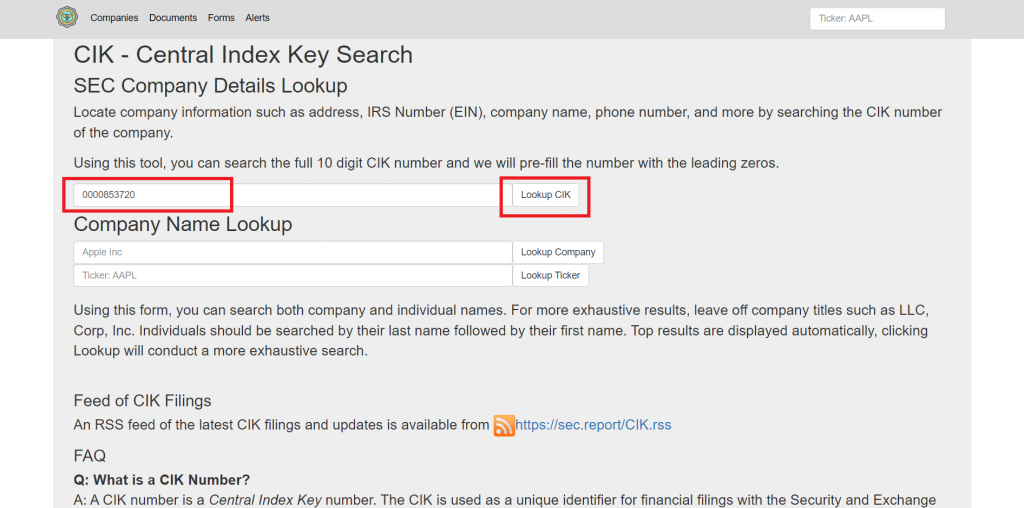 ขั้นตอนที่ 3: หน้าเพจของคุณจะถูกเปลี่ยนไปยังหน้า “CIK – Central Index Key Search”