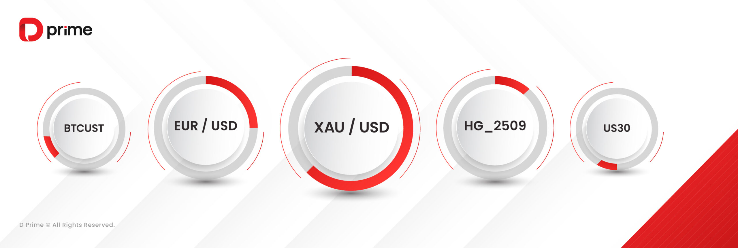 Các nhà đầu tư vẫn ưa chuộng những sản phẩm quen thuộc, với XAU/USD, EUR/USD, HG_2509 (Copper Futures), BTCUST (Bitcoin), and US30 (Dow Jones) nằm trong top 5 sản phẩm được giao dịch nhiều nhất.