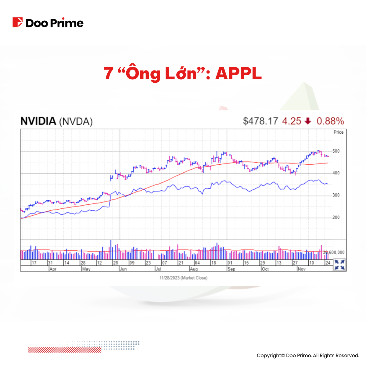 7 cổ phiếu lớn nhất sàn chứng khoán Mỹ đang tăng cao. Cũng chính nhờ “Magnificent 7”, cụ thể bao gồm Apple (AAPL), Alphabet (GOOGL, GOOG), Microsoft (MSFT), Amazon (AMZN), Meta (META), Nvidia (NVDA) và Tesla (TSLA), làm động lực chính thúc đẩy thị trường chứng khoán Mỹ đạt đến đỉnh mới.