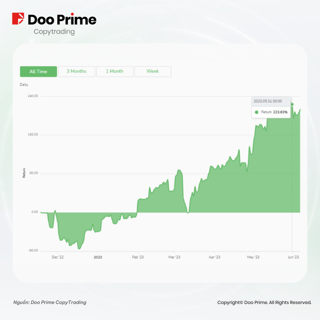 Kể từ khi chính thức được ra mắt vào tháng 9 năm 2022, Doo Prime CopyTrading đã gây được tiếng vang lớn trong ngành, với sự công nhận và tán dương từ quý khách hàng thân yêu. Có thể nói, cộng đồng giao dịch thông qua ứng dụng trên đã ghi nhận khả năng sinh lời ngay tức thì, bên cạnh việc chứng kiến sự gia tăng mạnh mẽ về số lượng của nhà giao dịch, với 1300 người dùng mới chỉ tính riêng trong tháng 5.