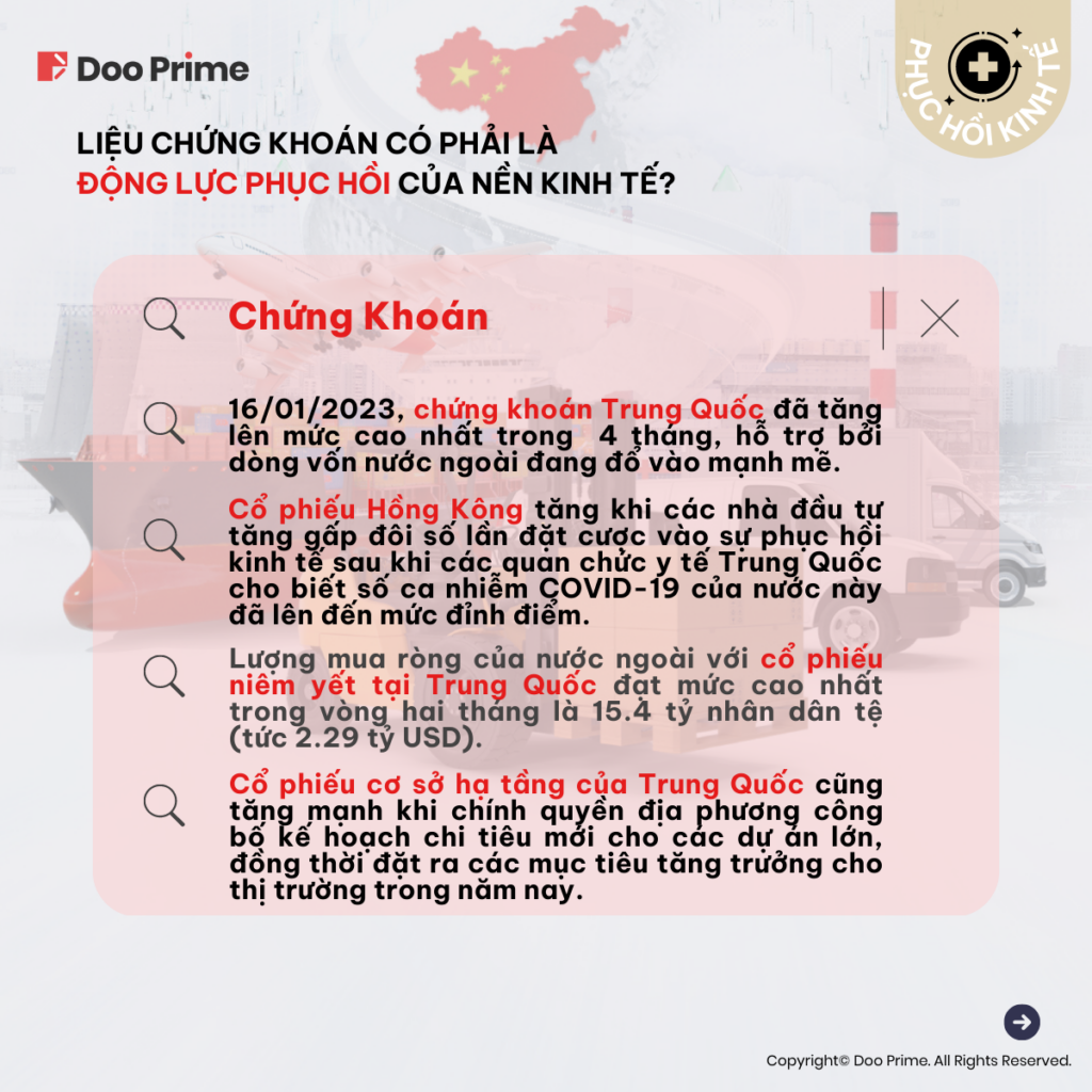 Vào ngày 7 tháng 12 năm 2022, Trung Quốc – nền kinh tế lớn thứ hai thế giới đã nới lỏng chiến lược Không Covid được thiết lập vào ba năm trước đó. Với sự áp dụng của chính sách trên, nền kinh tế Trung Quốc đã phải đối mặt với hàng loạt các thách thức khác nhau kể từ khi dịch bệnh chính thức bắt đầu. Tuy nhiên, với việc Trung Quốc tiến hành xoay trục khỏi chiến lược có phần hà khắc trên, nền kinh tế của nước này đã có dấu hiệu phục hồi kể từ cuối tháng 12 và dự kiến sẽ tiếp tục phục hồi mạnh mẽ hơn nữa trong thời gian sắp tới.